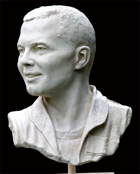 Life size portrait bust as study for the Stephen W. Pless, USMC, Medal of Honor, Memorial project.